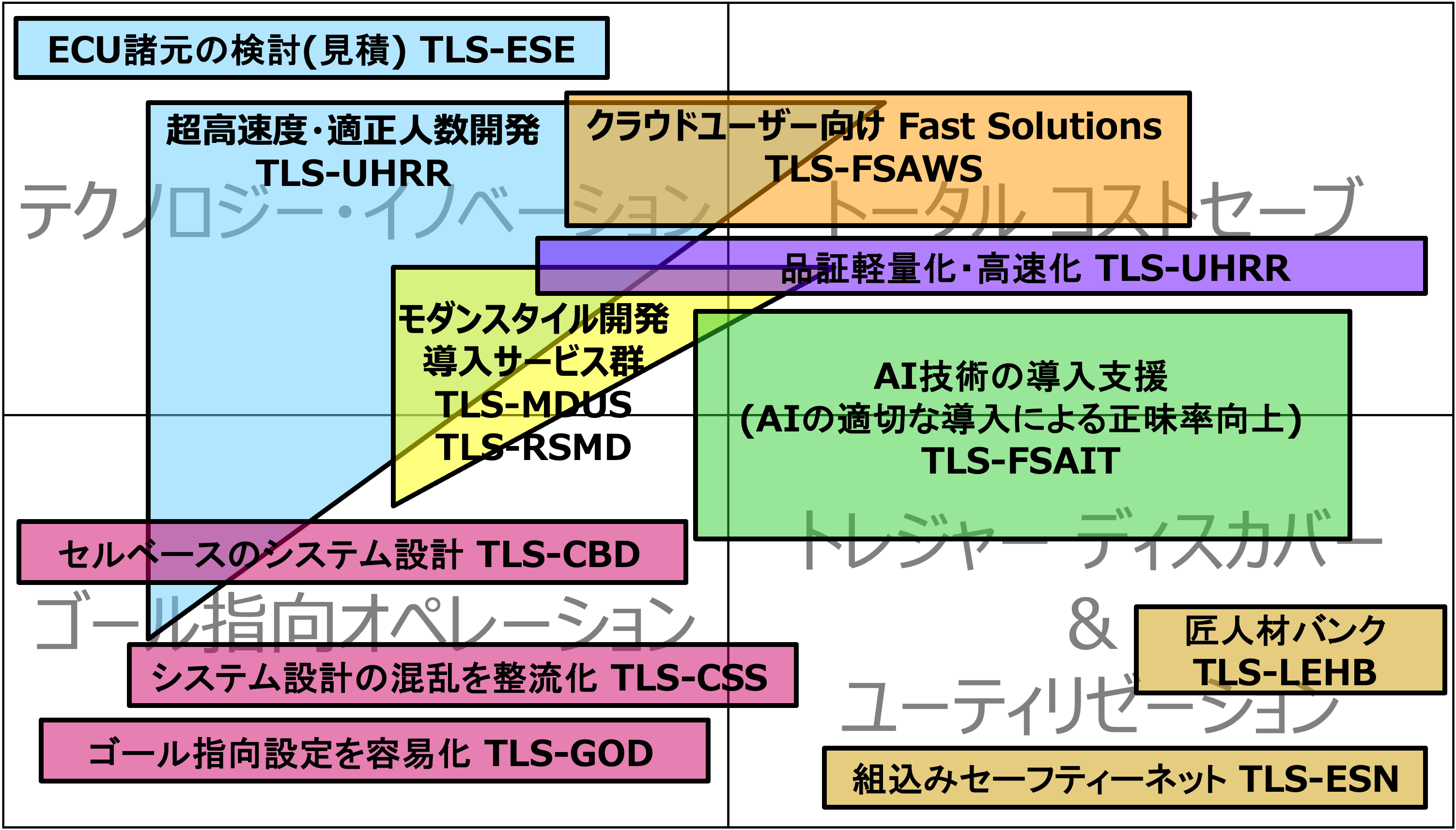 ・ゴール指向を持った、広義のチームオペレーションが可能となる設計開発の基盤※(人/技術/役割/環境/計画)を作る。※ゴール指向メソッド