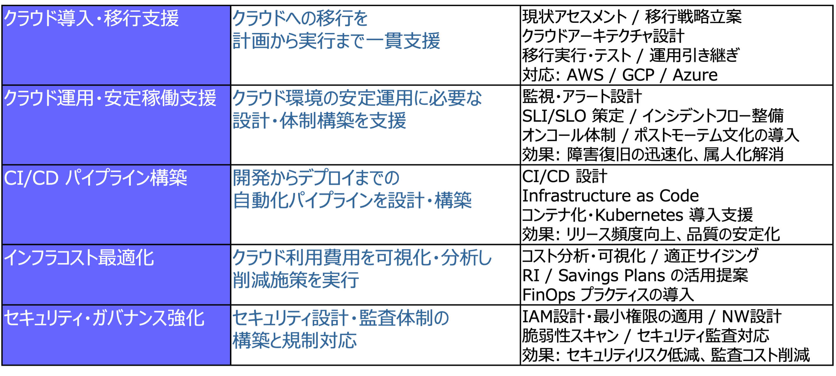 ・お客様が必要とするフェーズに対し、サービスを提供可能。